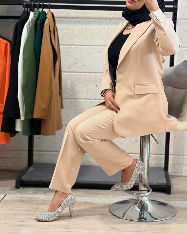 کت و شلوار زنانه ساده زیبا جنس دیپلمات لمه دار کالکشن شیک پوشان