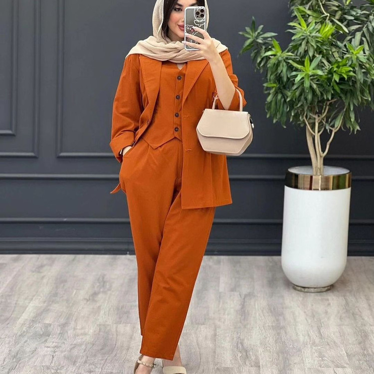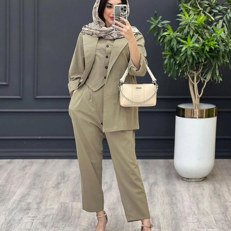سه تیکه زنانه کت و شلوار و جلیقه کاری شیک و مجلسی 0066 کالکشن شیک پوشان