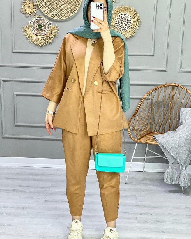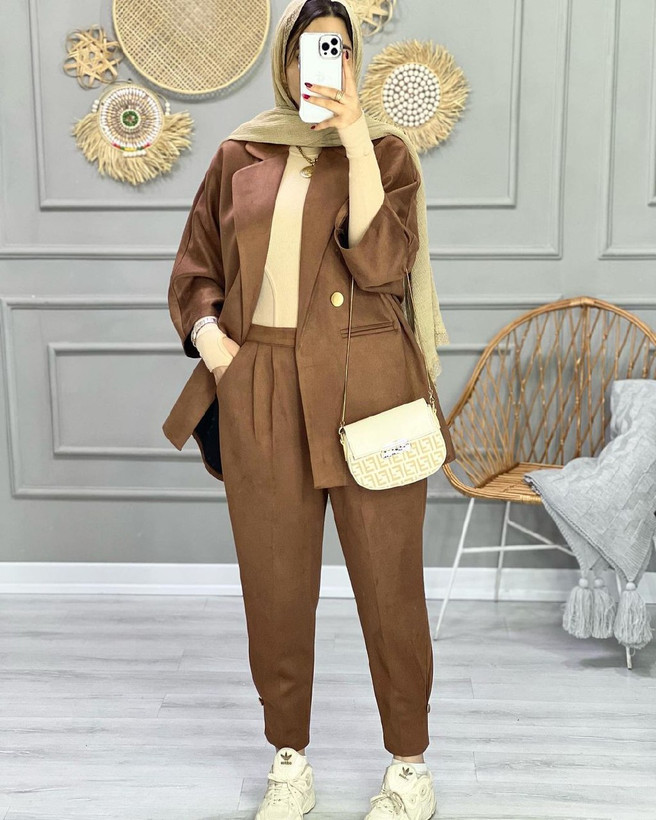کت و شلوار زنانه مخمل شیک 0071 کالکشن شیک پوشان