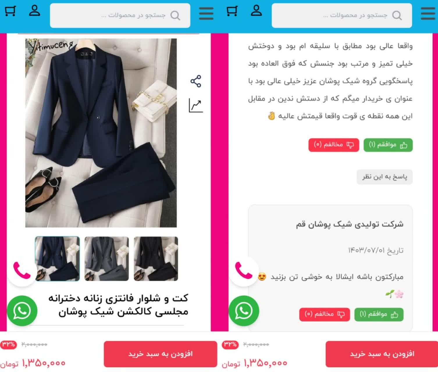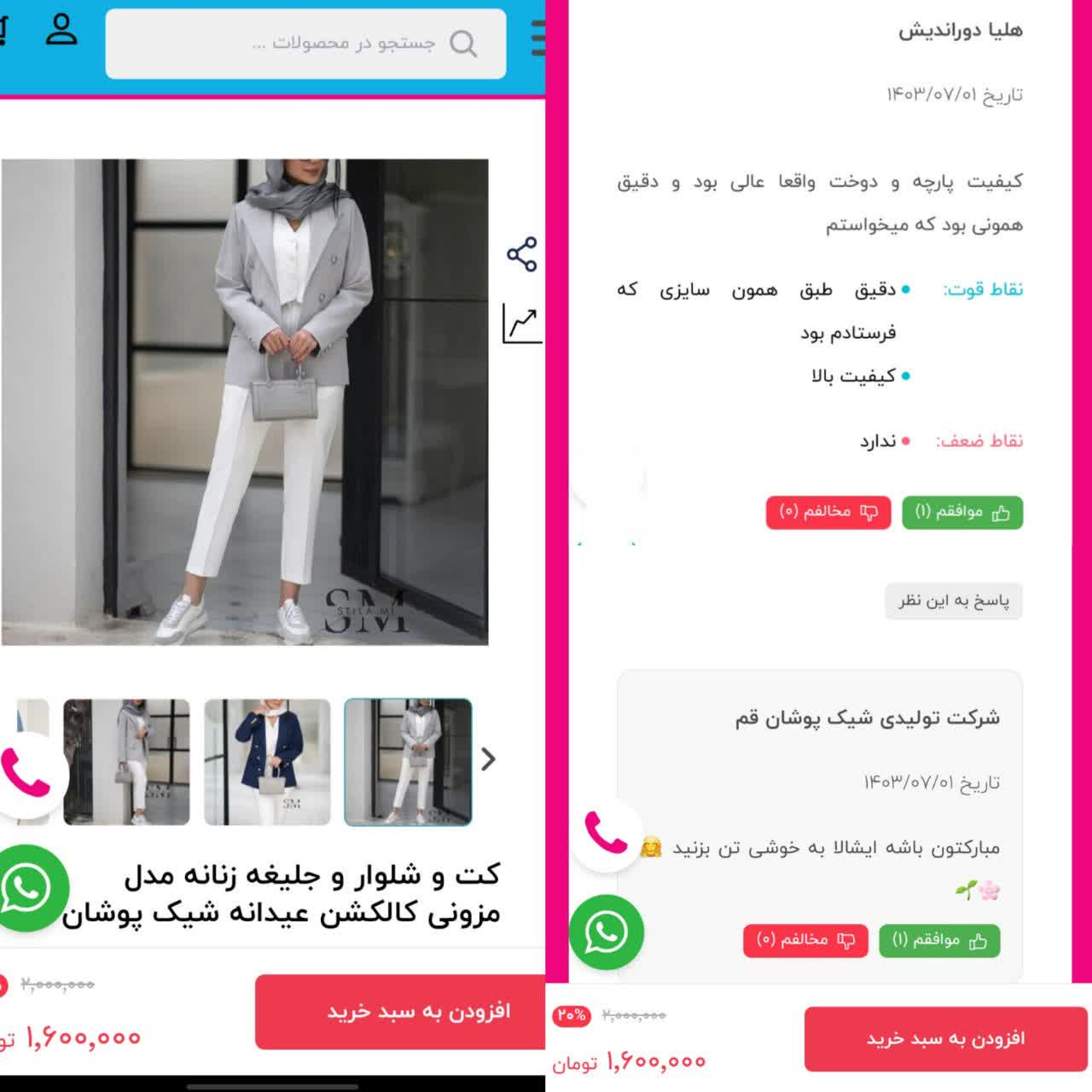 کت و شلوار زنانه نازگل کالکشن شیک پوشان۳٬۰۰۰٬۰۰۰ 33%